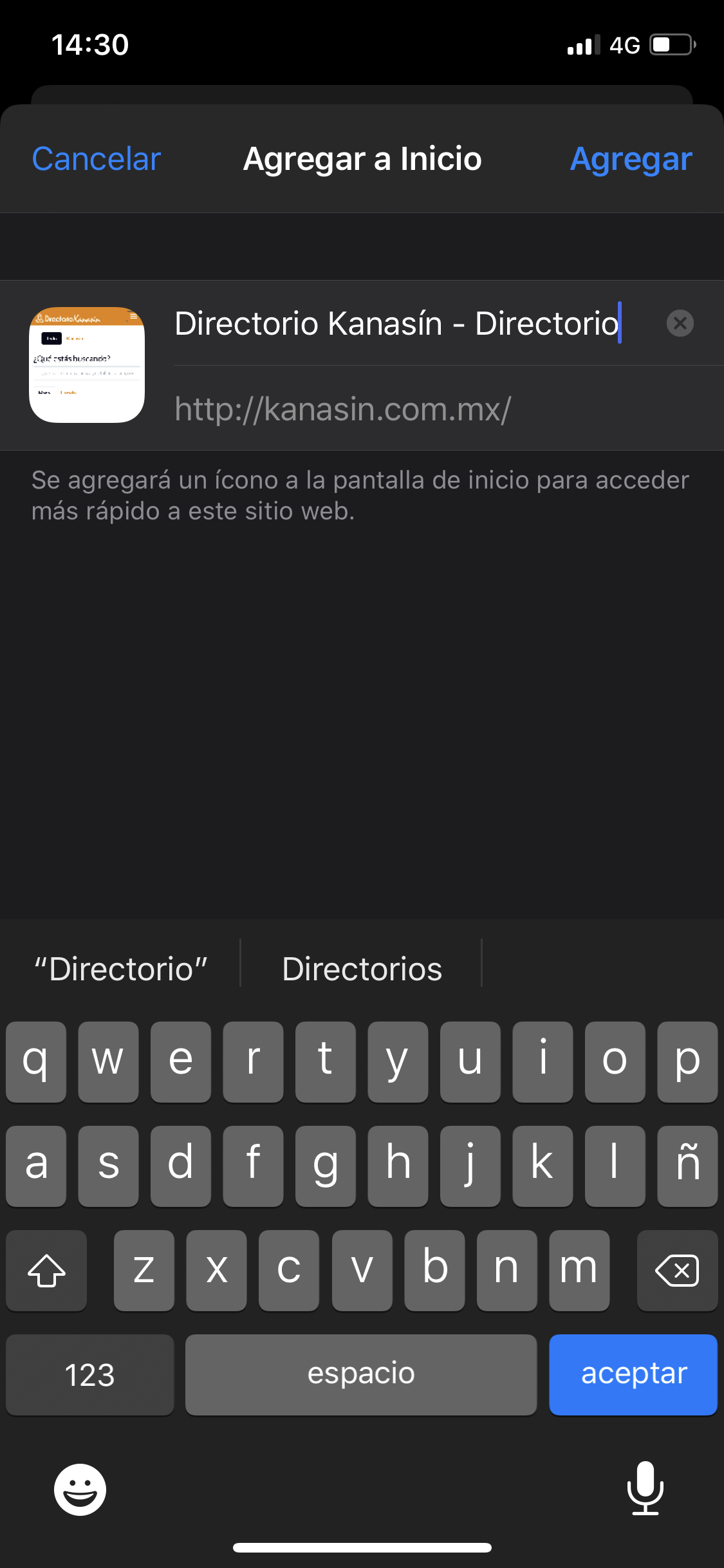 Agregar a la pantalla principal